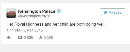 "Ее Королевское Высочество и ее ребенок чувствуют себя хорошо", - говорится в сообщении Кенсингтонского дворца в Twitter.