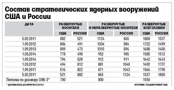 Сравняться России удалось как по числу носителей ядерных вооружений в составе Стратегических ядерных сил (СЯС), так и по количеству боеголовок на развернутых носителях.