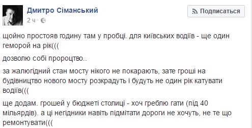На место происшествия сразу же приехал мэр города Виталий Кличко и порадовал нас новым перлом о том, что “мост устал”.