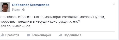 Многие пользователи соцсетей указывают на то, что объекты инфраструктуры в Украине находятся в аварийном состоянии, и в обвале моста нет ничего удивительного.