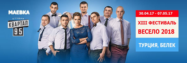 Тринадцатый фестиваль "ВЕСЕЛО 2018" пройдет в пятизвездочном турецком отеле в Белеке с 30 апреля по 7 мая. Планируются выступления: Оли Поляковой, Монатика, групп "Ляпис-98" и Ума Турман, "Квартал 95", а также спектакль "Загадочные вариации" со Станиславом Бокланом и Алексеем Вертинским в главных ролях.